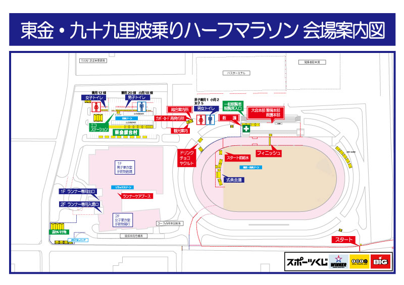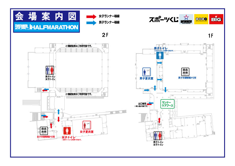 今大会の「会場案内図・トイレ案内図」と「ランナーの皆さんの1日(モデルケース)」を作成しましたので、大会のイメージを掴んでいただければと思います。