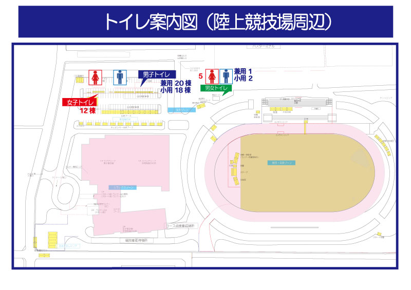 今大会の「会場案内図・トイレ案内図」と「ランナーの皆さんの1日(モデルケース)」を作成しましたので、大会のイメージを掴んでいただければと思います。